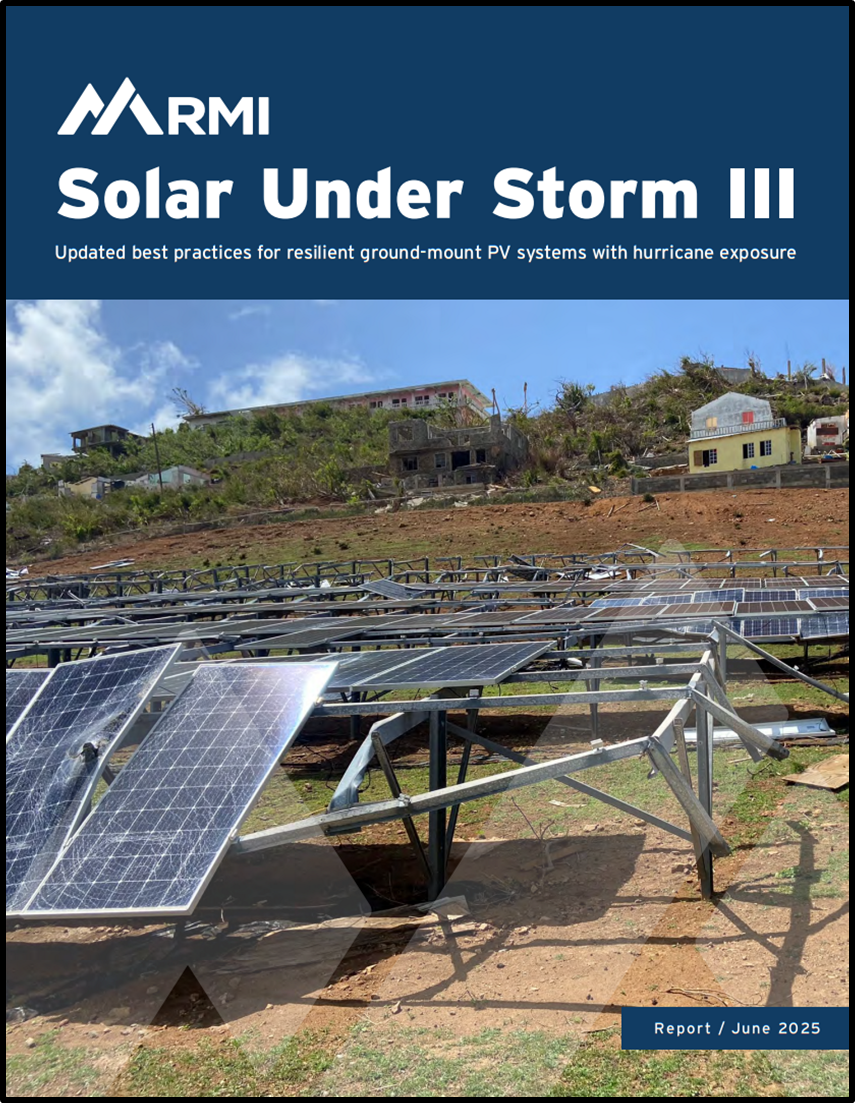 Partiendo de ese punto de inflexión histórico, y enriquecido por la investigación de campo de tres instalaciones de paneles en tierra impactadas por el huracán Beryl en julio de 2024, el huracán categoría 5 más temprano registrado en el Atlántico Norte, el informe Solar Under Storm III actualiza y profundiza un conjunto de prácticas recomendadas para hacer más resilientes los sistemas fotovoltaicos de montaje en tierra. Las inspecciones en Carriacou, Union Island y Mayreau, todas en las Granadinas, revelaron un contraste revelador: La instalación de Mayreau había sido construida siguiendo los estándares previos de Solar Under Storm, con postes de doble fundación, pernos pasantes con hardware resistente a la vibración y bajo ángulo de inclinación. Su subestructura resistió completamente el embate del huracán, cada poste, corriente y conexión se mantuvo en su lugar. No obstante, aproximadamente el 70% de los módulos fallaron en los orificios del marco por fatiga de baja frecuencia cíclica, un modo de falla que no había sido documentado en ediciones anteriores. Este hallazgo ilustra con precisión la lógica del informe: fortalecer los eslabones débiles identificados en tormentas anteriores inevitablemente revela el siguiente eslabón más frágil de la cadena. Las instalaciones en Carriacou y Union Island, por su parte, mostraron los patrones ya conocidos de falla (clips de sujeción compartidos, tornillos autoperforantes, rieles de aluminio tipo T, falta de soporte lateral), modos que en Carriacou fueron responsables de más del 50% del daño al sistema.